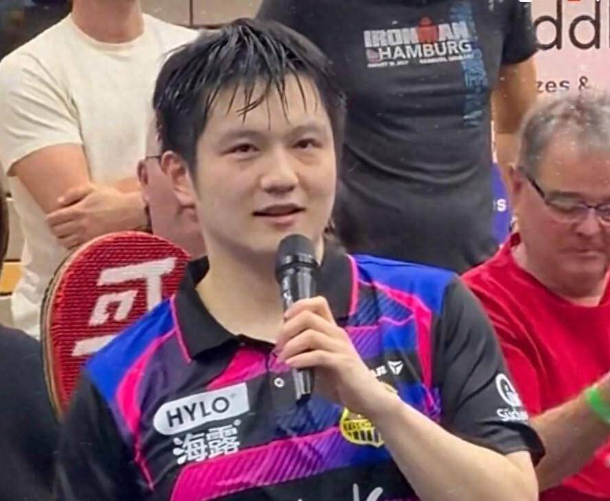2026年4月16日的夜晚,樊振东在萨尔布吕肯主场迎来了告别战。 他独得两分帮助球队3:1战胜云达不莱梅。 赛后,他用流利的英文向俱乐部和球迷道别。 而他的下一站早已确定。 2026年3月,德甲传统豪门杜塞尔多夫俱乐部官方宣布,樊振东将以自由转会形式加盟,双方签下为期一年的合同,他将于2026年7月1日正式成为杜塞尔多夫的一员。
